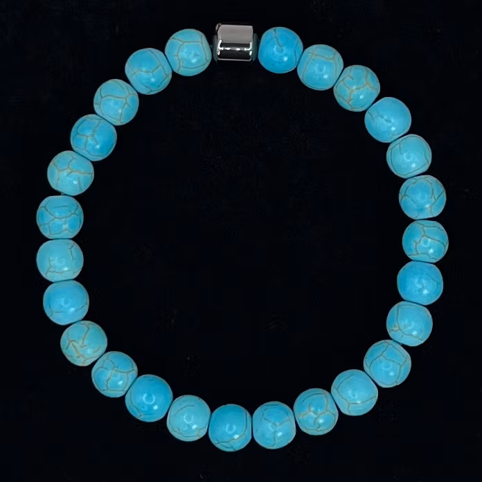 Turquoise Wave Armbåndet er laget av naturstein og glassperler i turkise og blå toner som minner om havet på en klar sommerdag. De lette variasjonene i fargen gir armbåndet dybde og et naturlig spill, samtidig som uttrykket er balansert og harmonisk. Et perfekt valg for deg som vil tilføre litt frisk energi til antrekket!