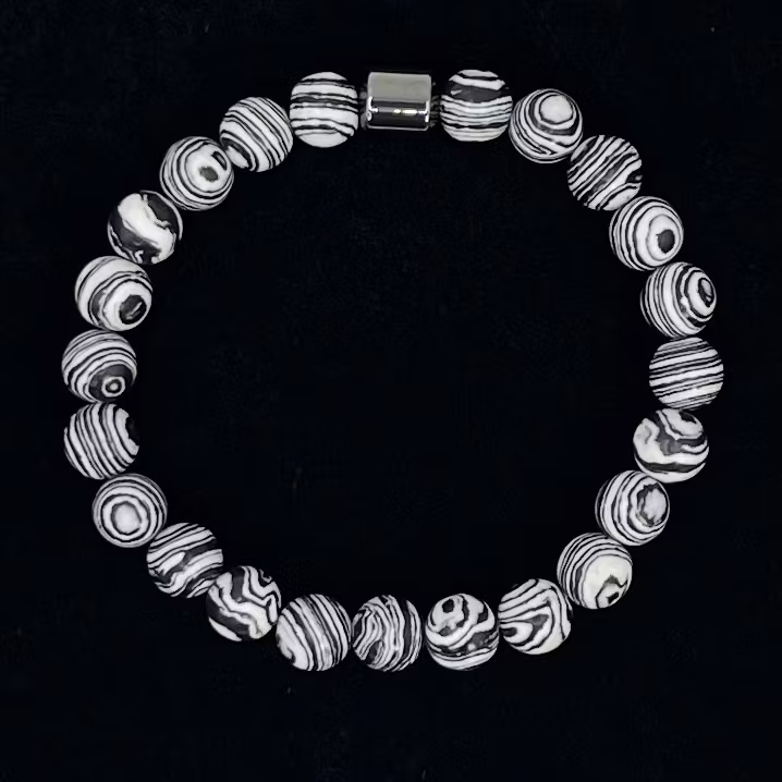 White Marble Armbåndet er laget av naturstein og glassperler i en elegant kombinasjon av hvite og sorte toner med subtil marmormønstring. Den stilrene kontrasten gir armbåndet et tidløst og moderne uttrykk, perfekt som et allsidig tilbehør som passer til alle antrekk.