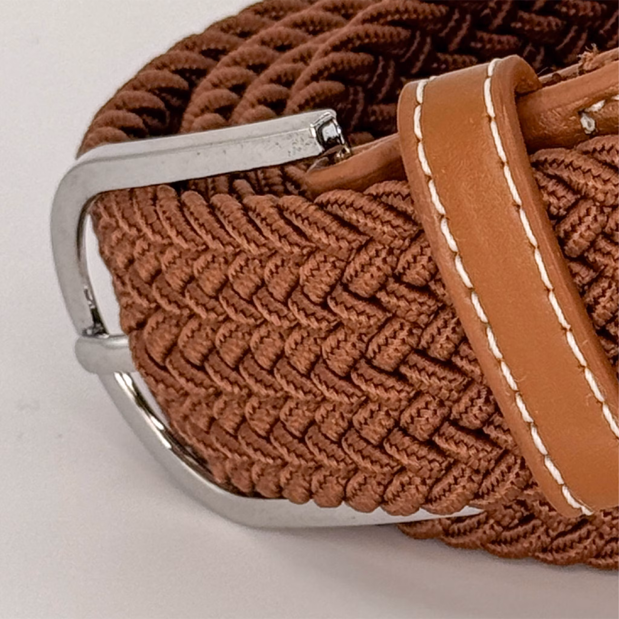 Et tidløst og komfortabelt belte i mellombrun, solid som gammelt treverk og med en klassisk, naturlig eleganse. Den elastiske kvaliteten gir perfekt passform som følger bevegelsene dine , ideelt til både hverdag, arbeid og fritid.