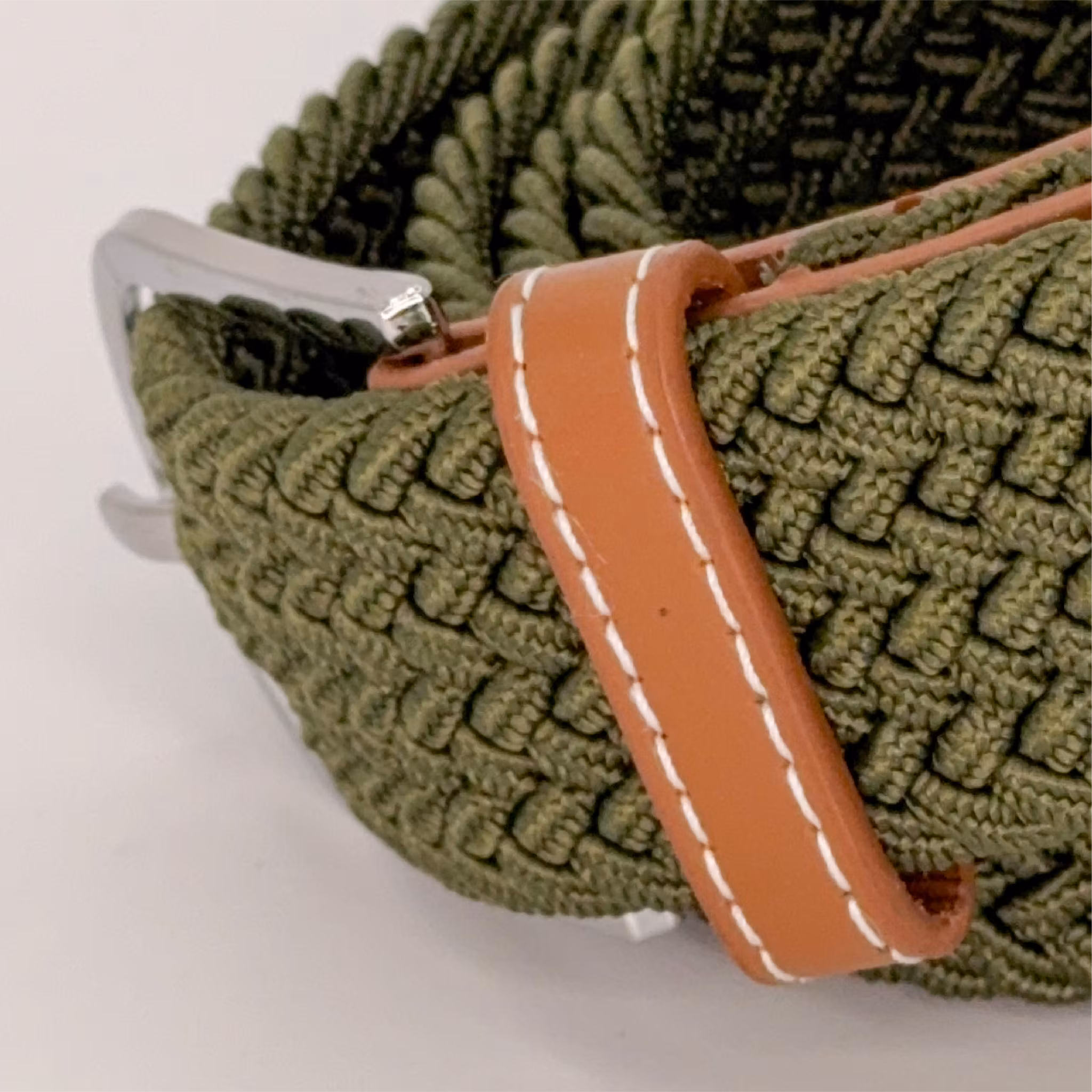 Et tidløst og komfortabelt belte i militærgrønt , jordnær og inspirert av mose og skogbunn. Den elastiske kvaliteten gir perfekt passform som følger bevegelsene dine, ideelt til både hverdag, arbeid og fritid.