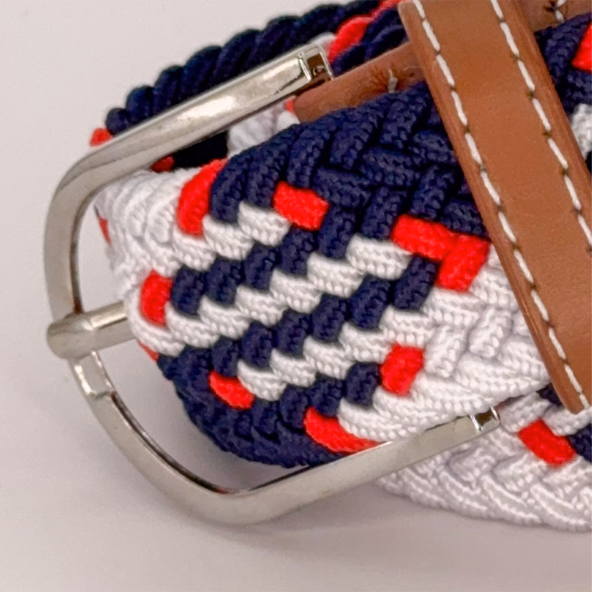 Et tidløst og komfortabelt belte i klassiske maritime farger, dyp blå, rødt og hvitt, inspirert av nordisk sjøfart og kystkultur. Den elastiske kvaliteten gir perfekt passform som følger bevegelsene dine, ideelt til både hverdag, arbeid og fritid.