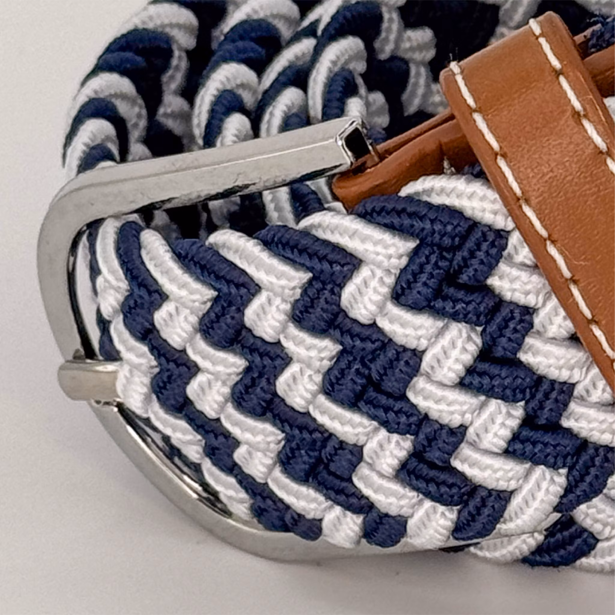 Et tidløst og komfortabelt belte i blått sebramønster, inspirert av havets bølger og isens klare kontraster. Den elastiske kvaliteten gir perfekt passform som følger bevegelsene dine, ideelt til både hverdag, arbeid og fritid.