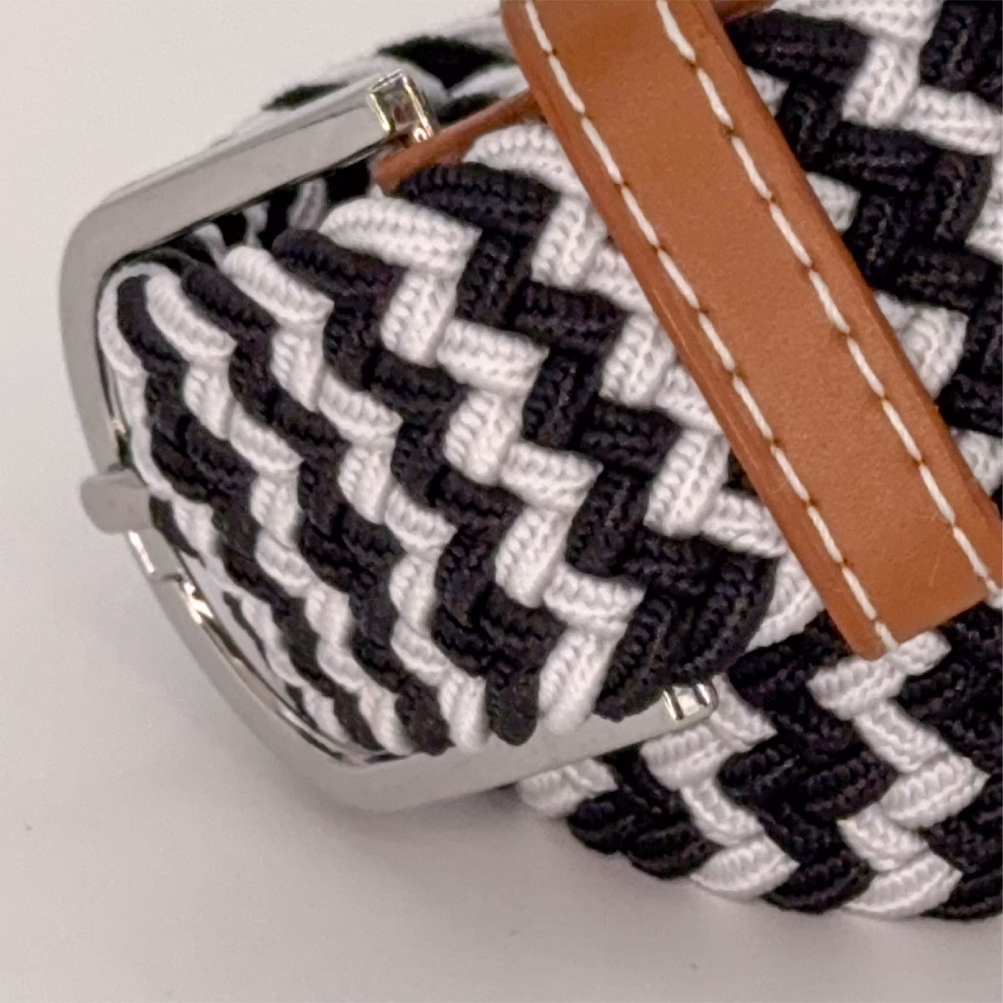 Et tidløst og komfortabelt belte i sort-hvitt sebramønster, inspirert av villmarkens kontraster og en følelse av nordisk minimalisme. Den elastiske kvaliteten gir perfekt passform som følger bevegelsene dine, ideelt til både hverdag, arbeid og fritid.