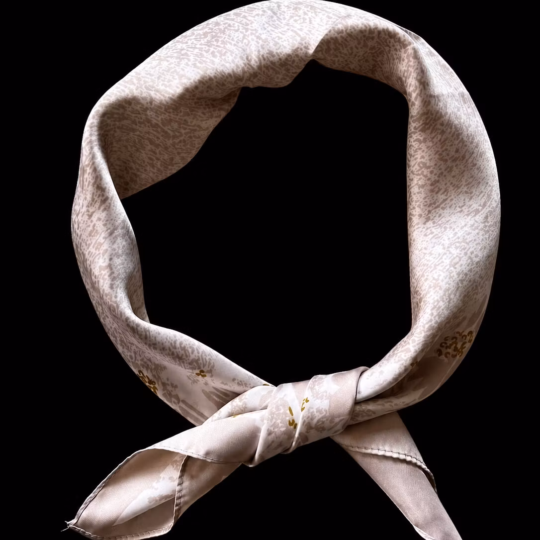 Det feminine og stilrene uttrykket gjør skjerfet perfekt både til hverdags og spesielle anledninger. Et allsidig tilbehør som kan brukes rundt halsen, i håret, knyttet på vesken eller som et dekorativt belte – ideelt for å gi antrekket et subtilt preg av eleganse.