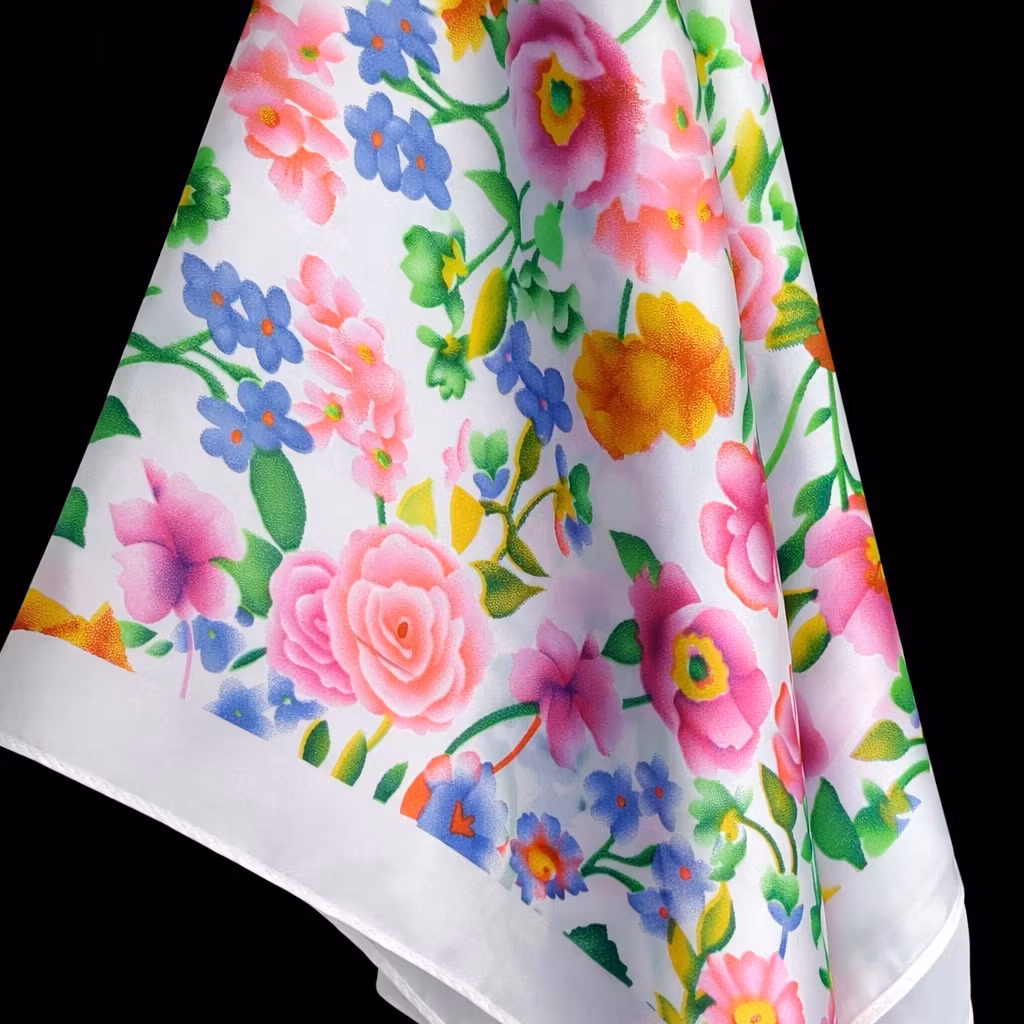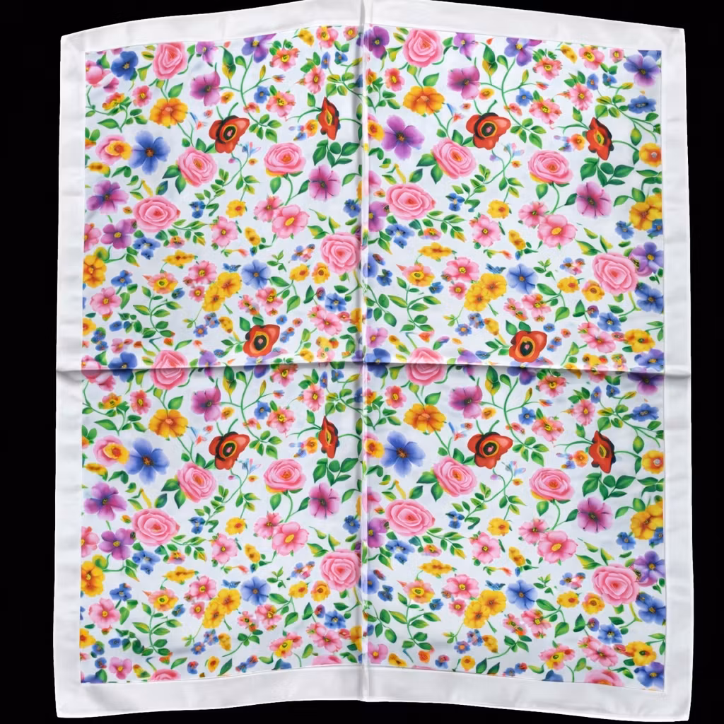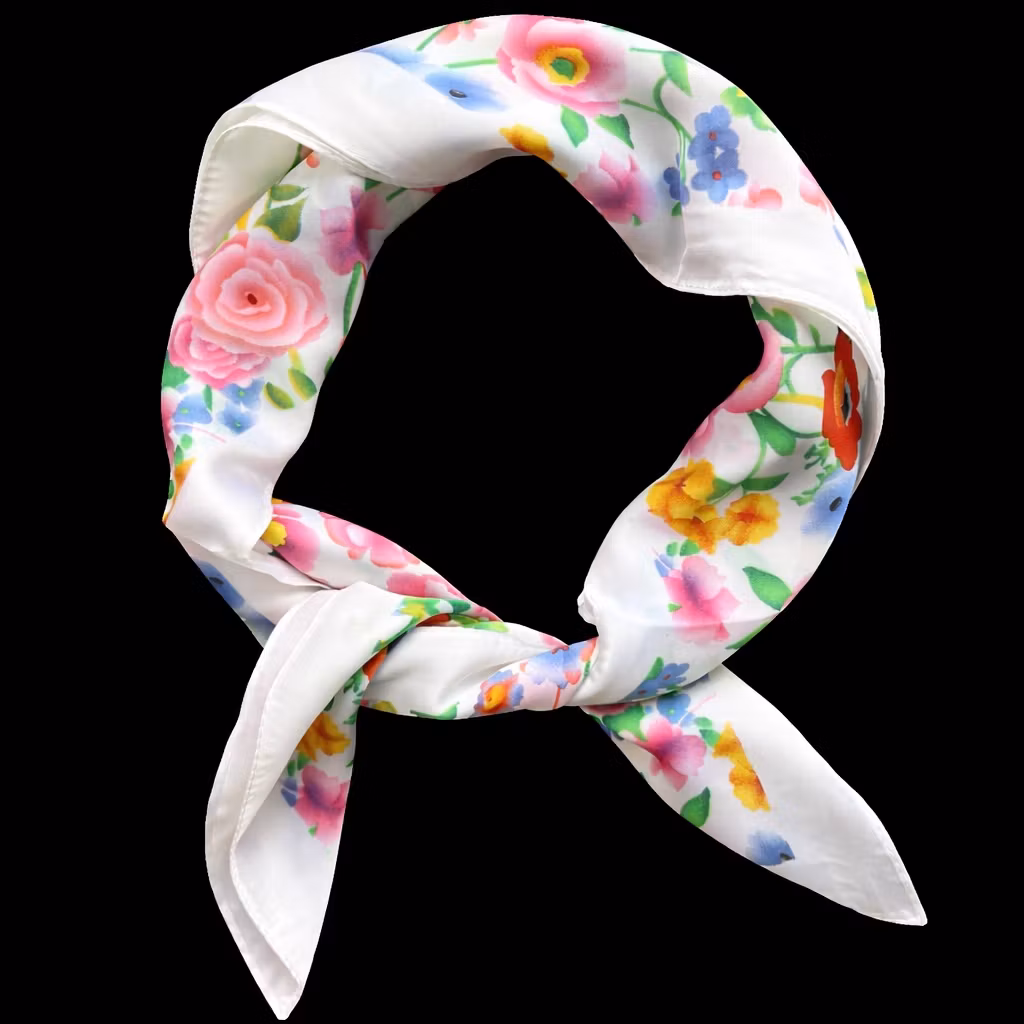 Et delikat og sjarmerende pynteskjerf med hvit bunnfarge dekorert med små, fargerike blomster i livlige nyanser av rosa, gul, grønn, blå, rød og oransje. Petite Bloom kombinerer en ren og lys base med et finstemt blomsterdesign som gir antrekket et lett, elegant og sommerlig uttrykk. De mindre blomstermotivene skaper et subtilt, men lekent preg, samtidig som de fargerike detaljene gir skjerfet liv og personlighet.