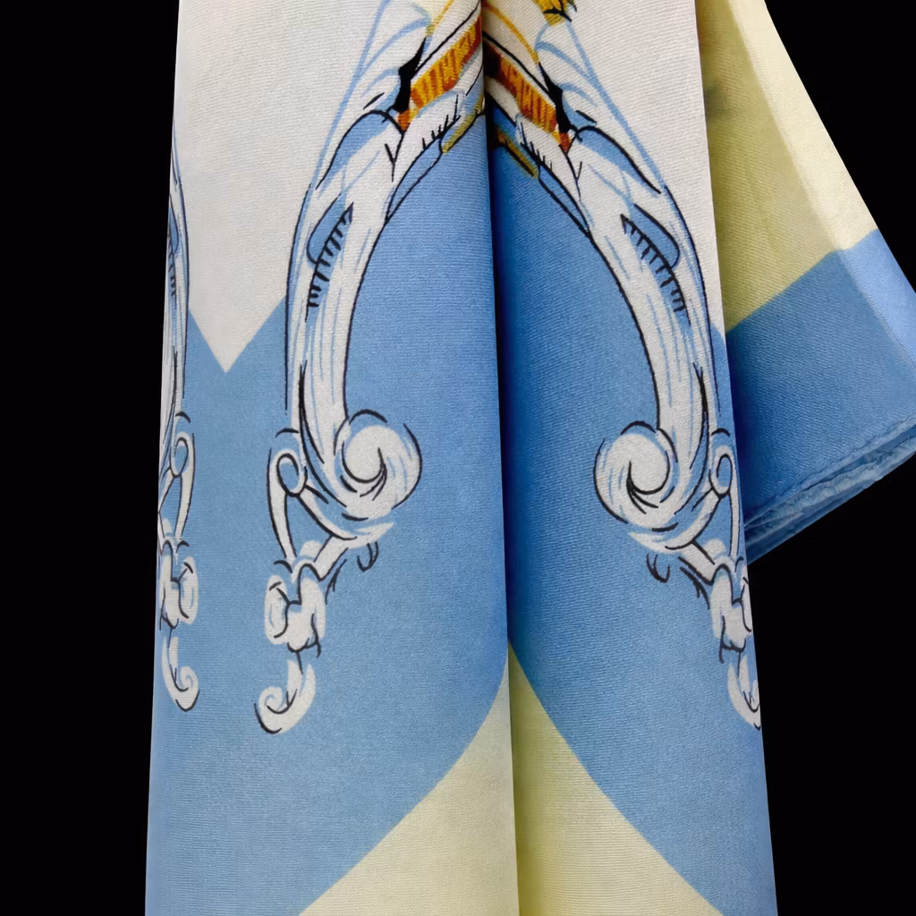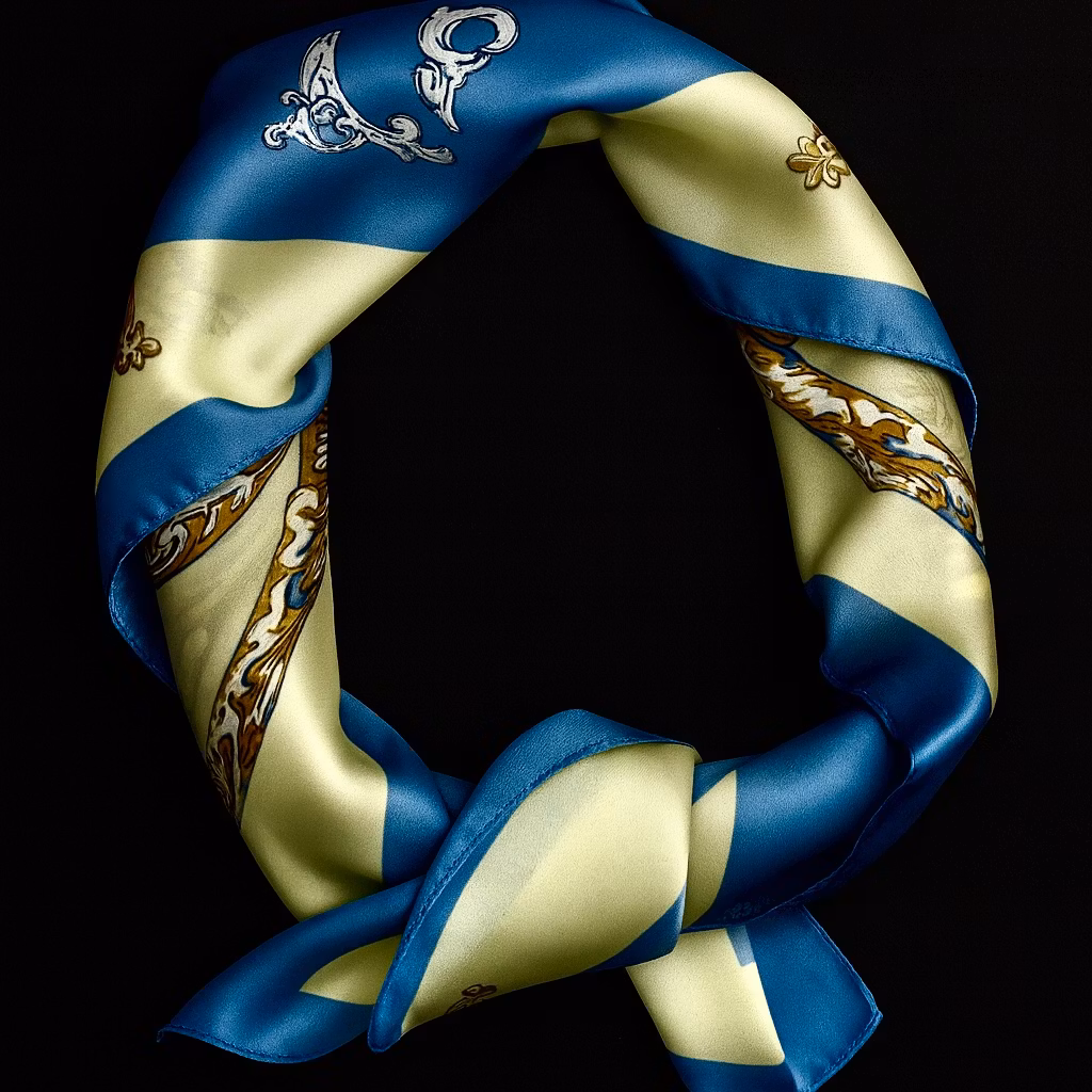 Et elegant og tidløst pynteskjerf i lys blått og krem, med et delikat mønster som tilfører antrekket både struktur og karakter. Skyline Pattern kombinerer rolige, harmoniske farger med et raffinert mønster, og gir looken et subtilt, men sofistikert preg. Perfekt rundt halsen, i håret, på vesken eller som et dekorativt belte – et allsidig tilbehør som løfter antrekket med stil og finesse.